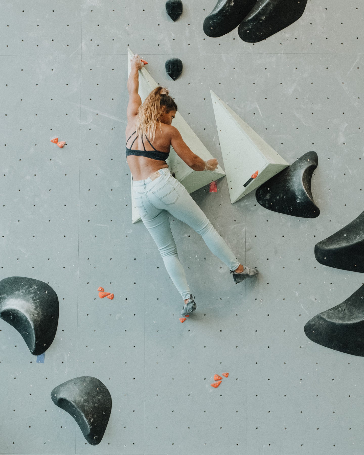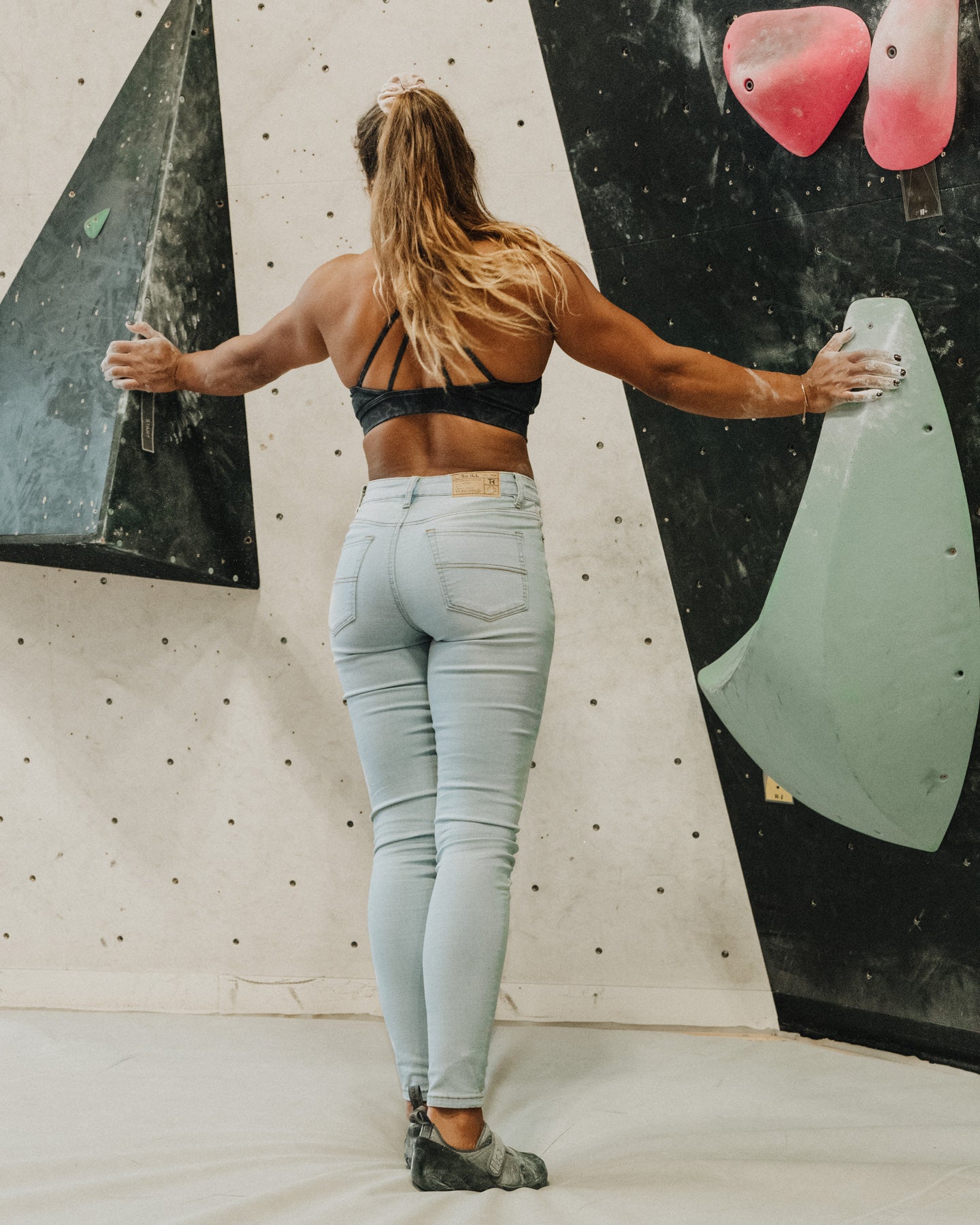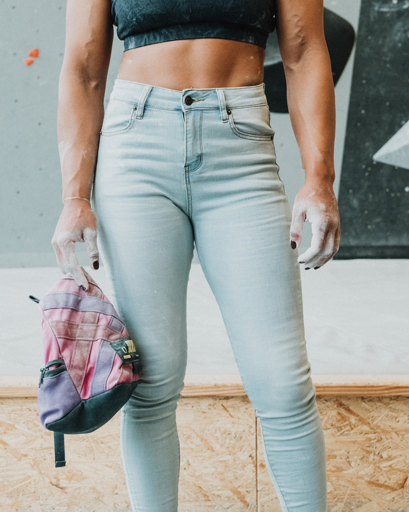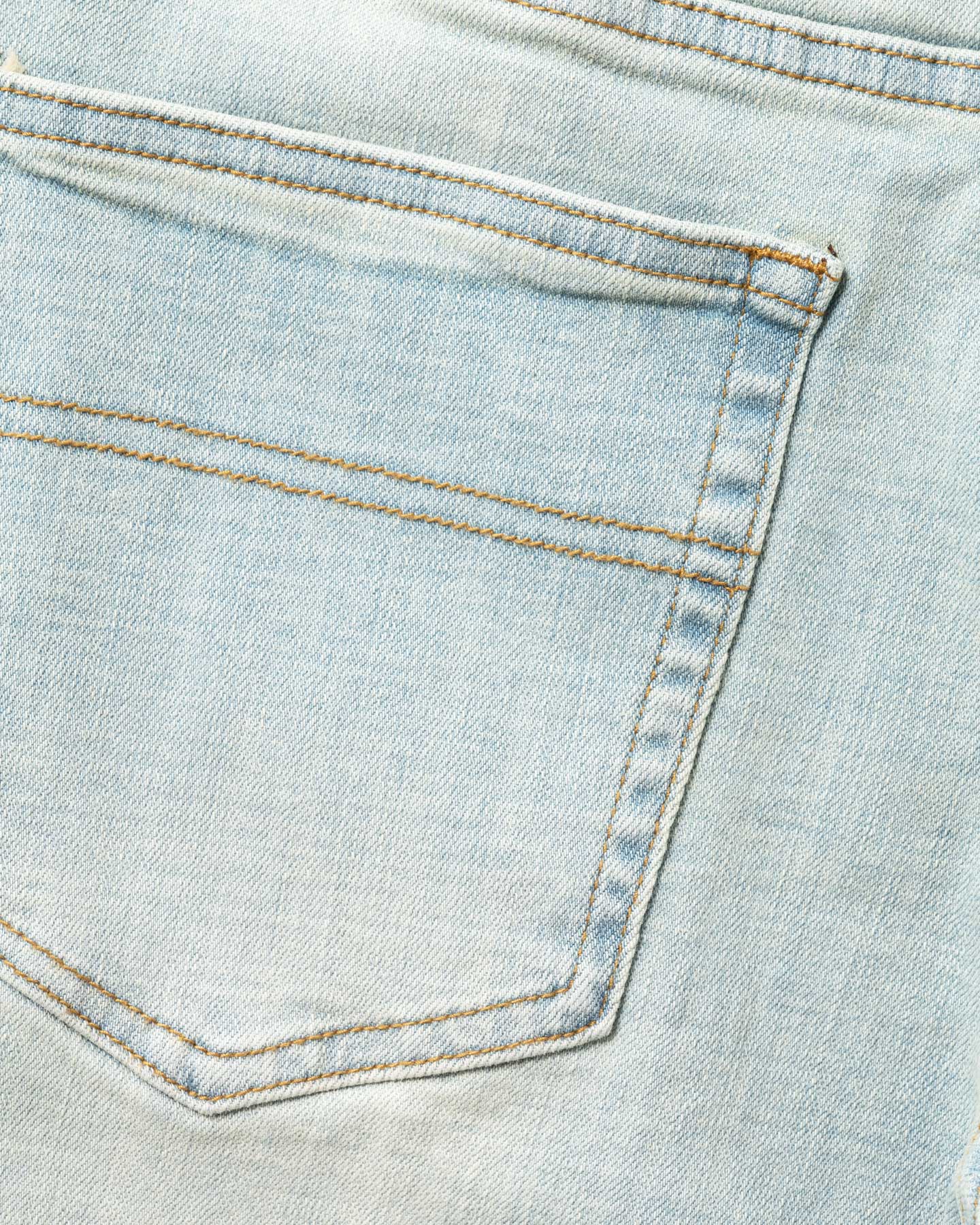 This Light Wash pair is made of a much thinner fabric than the Forest Denim (the best). These stretch out more than I'd like throughout the day. The high-waisted fit would be perfect if the waistband tapered in—if I crouch or squat, they dip way too low in the back for my liking. Going to tailor them in at the waist! They are also very tight-fitting throughout the legs so be sure to check the measurements and compare to your actual size, I went with my regular sizing.